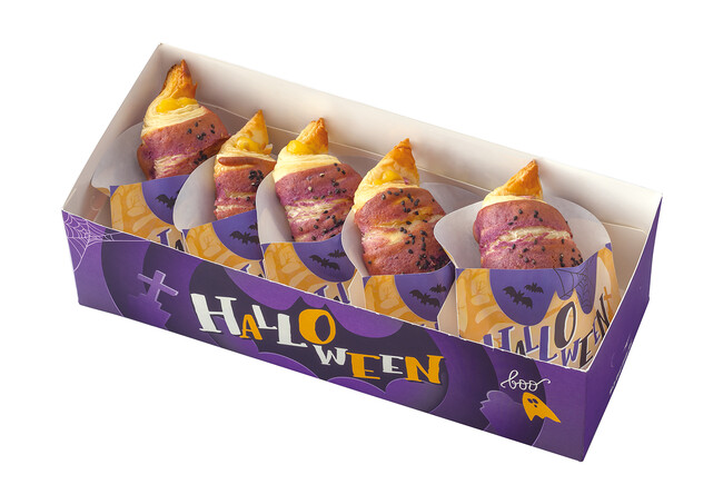 今年は『ナイトハロウィン~W(ダブル)・2層~』をテーマに、紫いもとさつまいもの2種類のお芋を使用した見た目でもハロウィンを楽しめるこの季節ならではの商品を発売します。少しミステリアスな見た目とは裏腹に、こだわり食材を使用した商品となっており、パッケージもハロウィン仕様になっているのでハロウィンパーティーの手土産などにもピッタリです。