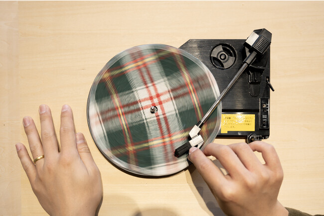 ITOCHU SDGs STUDIOでは、再生と循環、そのコンセプトで生まれる3クリエイターのアート作品を展示。Konel(コネル)は、「誰かの人生とともに過ごした衣服をただ捨ててしまうのではなく、また誰かの人生を支える役目を与える」というコンセプトのもと、廃棄衣類からできた板材でつくられた下駄を展示します。また、サステナブルな藍染め家具プロジェクト「Ao.(アオ)」によって実現した、廃棄木製家具と伐採・製材された無垢の木材を再構成する藍染め家具 「Ao.Re:(アオリ)」を発表する他、「触り心地を再生する」をテーマに、Studio POETIC CURIOSITY(スタジオポエティック キュリオシティ)が提案する「ファブリック・レコード」は、利用済みや廃棄されたファブリックからレコード盤を作り、再生することで、布から生まれる多様な音を楽しむ体験型の展示を行います。