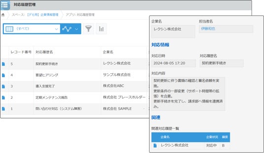 レクシンAI for kintone アプリ連携イメージ(ルックアップ・関連レコード)