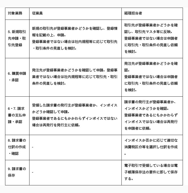 インボイス制度開始に伴い、仕入税額控除を受けるには適格請求書発行事業者(以下「登録事業者」)が発行した適格請求書(以下「インボイス」)を受け取る必要がありますが、制度開始前後で請求書処理業務には以下のように種々な業務フローの変化が生じます。