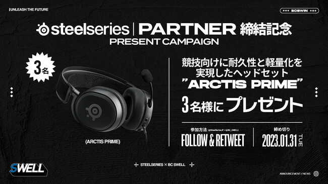 グローバルトップブランドであるSteelSeries様とのパートナーシップを発表できる事を光栄に思います。今後、BC SWELLの競技シーンでの活動を始め、ストリーマー配信、大会イベント、地域活動等を通じ、SteelSeriesブランドの価値向上に貢献して参ります。eスポーツと共にある多様なライフスタイルを体現するSWELLの展開にご期待ください。