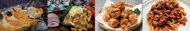 空前の餃子ブームを牽引する餃子の激戦区「浜松代表」であり、数々の餃子イベントや全国の百貨店に引っ張りだこの【うまいもん空海】は、銘柄豚「とこ豚」とシャキシャキ野菜を使用し、タレなしでも旨い大人気の浜松餃子「遠州浜松餃子」をご提供。全国ケバブグランプリ優勝【EFES STREET KITCHEN】は、ケバブの本場であるトルコで腕を磨いた料理人が、日本人の舌に合う、唯一無二の「チキンケバブ」を世界的なスポーツイベントに合う肉料理として提供します。日本唐揚協会主催、からあげグランプリ最高金賞受賞をした【まんぷく亭】が提供する、店主が30年以上かけて、時代の変化とニーズに合わせて改良を重ねた、伝説的なからあげ「紀州からあげ1パック5個」は、絶対に忘れられない味と思い出になること間違いなし!!【Little Oven】は、今回のイベントのため茨城県から参戦決定!!茨城県をこよなく愛する店主が、茨城県産ブランド小麦ユメシホウを使った特注生パスタと、手間暇を惜しみなくかけた自家製のボロネーゼソースを組み合わせた、まさに本場イタリアンといえる「極上!粗挽きボロネーゼ」を提供します。