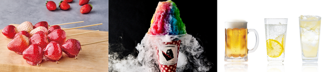 【ふるーつなのに~昔懐かし、あの味。~】:パリパリ生いちご飴、雲海もくもくレインボーかき氷