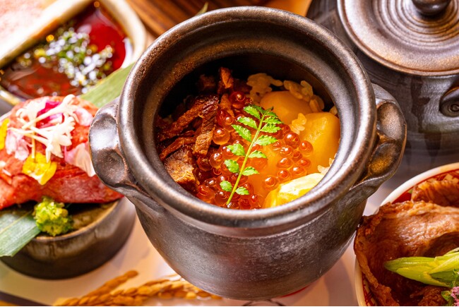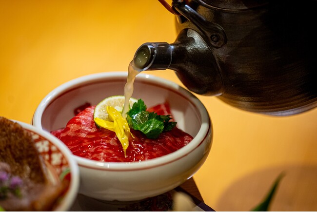 和牛の奥行きのある味わいを堪能できる、至極のお茶漬け。 牛テールの土瓶蒸しをかけてお召し上がりください。