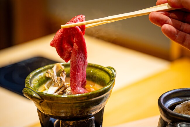 和牛を、昆布で煮出した特製出汁でいただく、至極の逸品です。