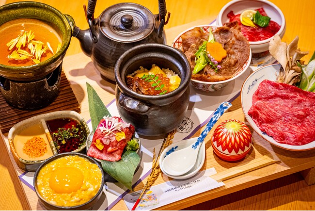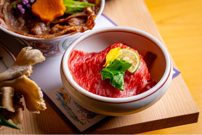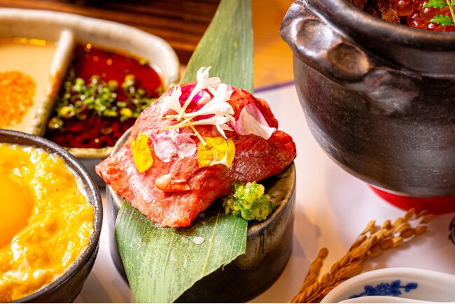 先斗町店で特化しているのは、「和牛」を使ったお料理。今回の秋メニューでも「和牛すき焼き丼」、「和牛肉寿司」など、とろける食感の和牛を贅沢に使ったメニューを取り揃えました。また、先斗町店では、料理だけでなく空間にも拘っております。カウンターのみの店内で、スタッフがお客様一人一人へおもてなしを致します。京を感じる逸品たち、特別な空間と丁寧なおもてなしをご用意してお待ちしております。
