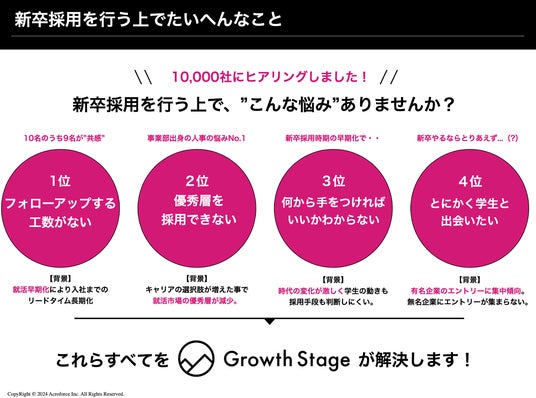 - “ベンチャー特化型”新卒マッチングサービス「Growth Stage(https://growthstage.jp/)」