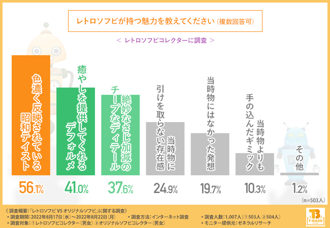 レトロソフビの魅力は『色濃く反映されている昭和テイスト』が半数を超え最多