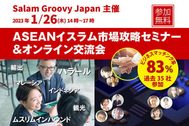 日本企業のイスラム市場進出を支援するメディア「Salam Groovy Japan」では、これまで3回のオンライン企業交流会を行ない、延べ参加35社、83%のマッチング率という結果を残してきました。
