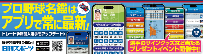 <「日刊スポーツ プロ野球選手名鑑タップ!2023」の概要>・シーズンを通してアプリ内でイベントを開催。現在もプレゼントイベントを実施中!