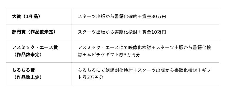 ・審査員:スターツ出版 書籍編集部、アスミック・エース、ちるちる編集部