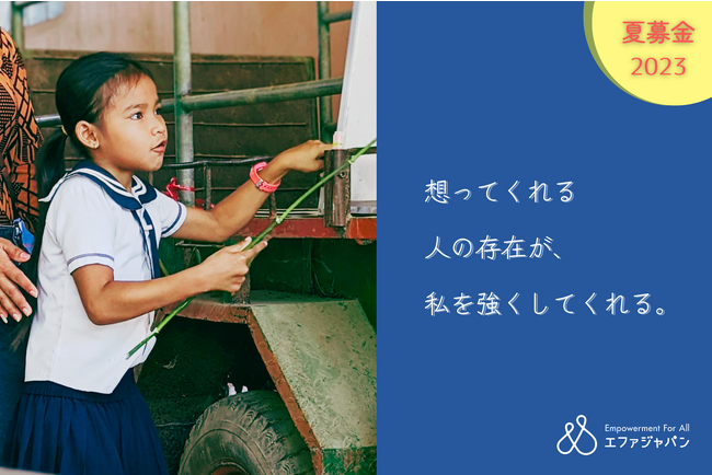 2023年は、日本カンボジア外交関係樹立70年の年。エファジャパン(理事長 伊藤道雄/所在地 東京都千代田区、以下「エファ」)は、カンボジア、ラオス、ベトナムで教育・福祉支援を行っています。困難な状況にあっても、未来を拓きたいと願う子どもたちのために、夏募金へご支援をよろしくお願いいたします。