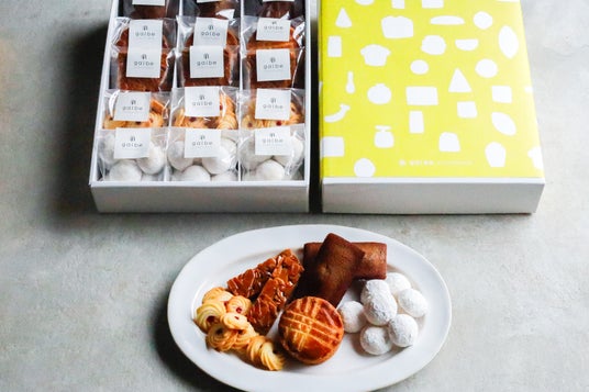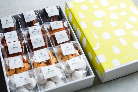 実はカヌレ以外にも人気の焼き菓子がたくさん。galbeのクッキー缶や詰め合わせは、デザインも可愛らしく、ギフトにも最適です。