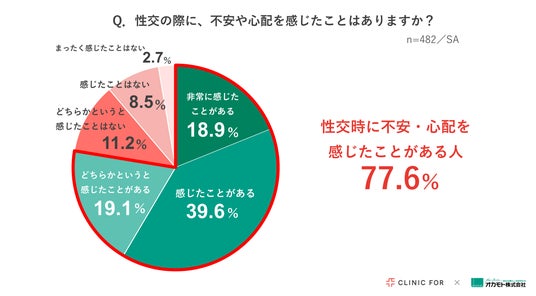 性交経験のある女性の約8割(77.6%)が「性交時に不安や心配を感じたことがある」と回答。
