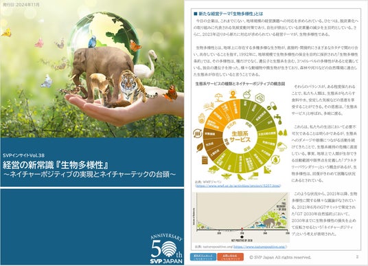 会員制マーケットリサーチサービスを提供している、株式会社SVPジャパン(本社:東京都中央区、代表取締役社長:橋本 雅、以下「SVPジャパン」)は、『経営の新常識『生物多様性』』と題したインサイト・レポートを公開しました。