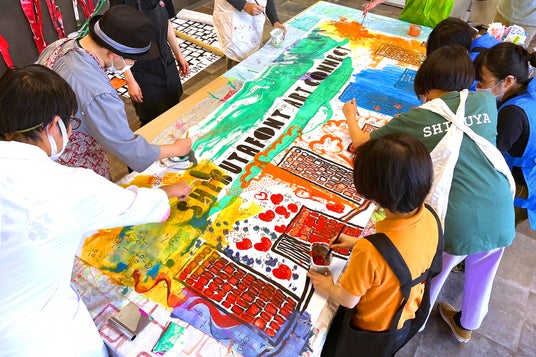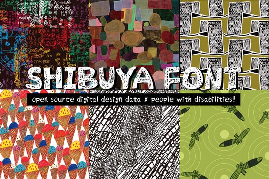渋谷区内にくらし・はたらく障がいがある人と「専門学校桑沢デザイン研究所」の学生がタッグを組み、フォントやパターンデータを制作、それらを渋谷区公認のパブリックデータ「シブヤフォント」として誰でも利用できるよう公式サイトで公開しています。売上の一部は渋谷区内の障がい者就労支援事業所に還元しています。“共に制作する” ”気軽に使える” ”商品に採用する”という誰でも参加できるデータの特性を活かして、渋谷区のダイバーシティ&インクルージョンの理念を広げています。