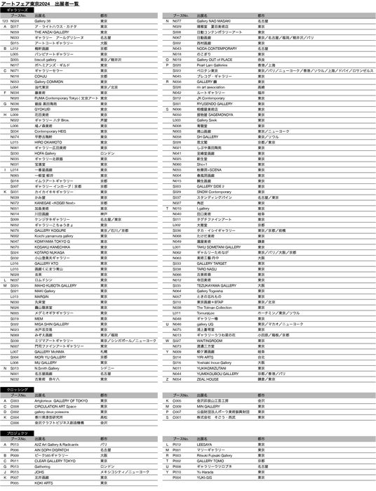 【アートフェア東京2024 出展者一覧】