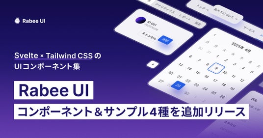 株式会社Rabee(本社:東京都渋谷区、代表取締役:上松勇喜)は、Svelte × Tailwind CSSのUIコンポーネント集「Rabee UI」において、ヘッダー・サイドバーの2種類のサンプルを含むUIコンポーネント4つを新たに公開しました。