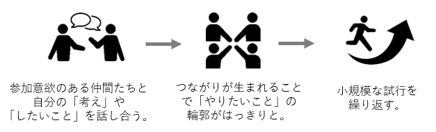 住民等がまちで“やりたい”ことの実現に向けて話し合い、実践する場を創出します。