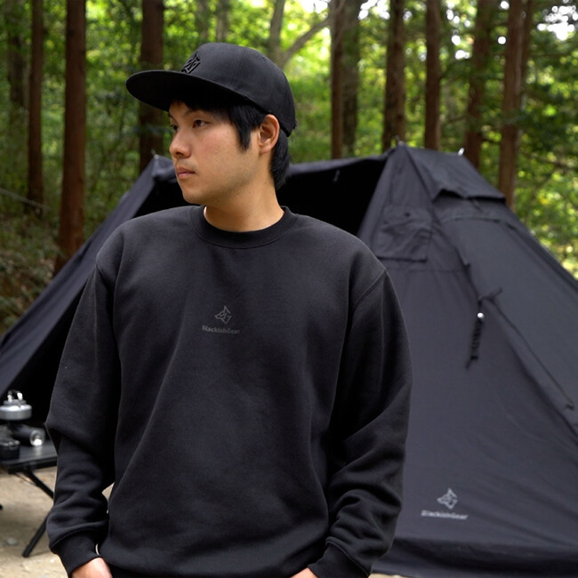 ブラックプリントのロゴが主張しすぎずにキラリと輝くBlackishGearのトレーナー。