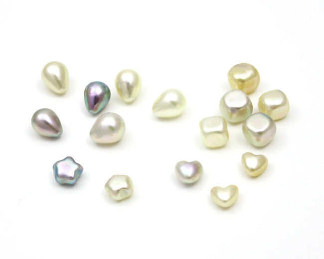 真珠は母貝の中で1年以上をかけてゆっくりと育まれますが、すべてが完璧な球体に成長するわけではありません。変形した真珠はバロックと呼ばれ、規格外・不良品という扱いとして、売られる前に廃棄されてしまうこともありました。しかし、不揃いの真珠であったとしても、伊勢志摩で大切に育てられた真珠であることに変わりはないと考え、その個性を生かした作品づくりも広がっています。