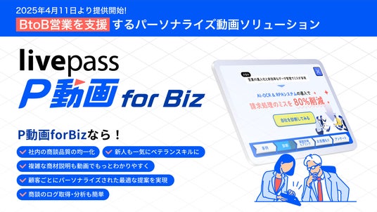 livepass株式会社(本社:東京都港区六本木、代表取締役CEO:中村旭宏、以下livepass)は、独自特許技術をベースとしたBtoB営業を支援するパーソナライズ動画ソリューション『P動画 for Biz』の提供を2025年4月11日より開始いたします。
