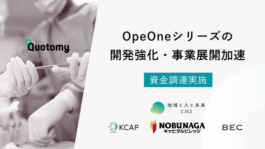 「医療者のポテンシャルを最大化し、健やかな医療をつくる」をミッションに掲げる株式会社クオトミー(東京都千代田区、代表取締役 大谷隼一、以下「当社」)は、外科系チーム医療DXを推進する「OpeOne(オペワン)シリーズ」の開発体制強化および事業展開の加速を目的として、地球と人と未来株式会社、京都キャピタルパートナーズ、NOBUNAGAキャピタルビレッジ、Bio Engineering Capital、複数の個人投資家から資金調達を実施しました。