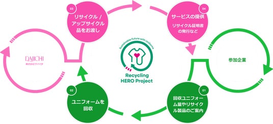 企業向けユニフォームの製造・販売・卸をおこなう株式会社ダイイチ(本社所在地 神奈川県横浜市中区 代表取締役社長 花本こず枝)は、不要になった企業ユニフォームを活用してサステナブルな社会に貢献できるサービス「Recycling HERO Project」を2025年1月16日(ヒ(1)ー(1)ロー(6)の日)より開始しました。