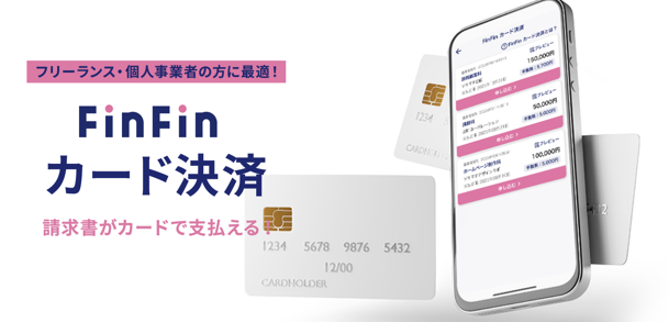 会計バンクはフリーランス・個人事業主の資金繰り改善を目的に、「スマホインボイスFinFin」へ新しい機能「FinFinカード決済」を搭載しました。「FinFinカード決済」は銀行振込指定の請求書をカードで支払えるサービスです。クレジットカードと併用することで、利用金額引き落とし日まで支払いを延長することもでき、フリーランス・個人事業主の資金繰り改善を実現します。