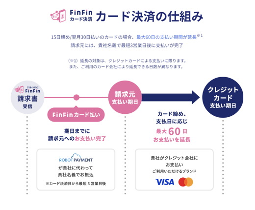 FinFinカード決済は会計バンク株式会社と株式会社ROBOT PAYMENTで運営しております。