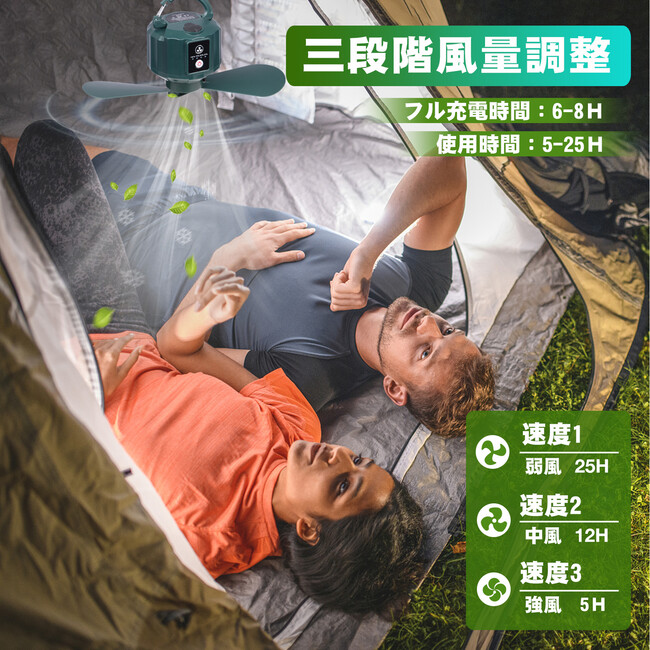 アウトドア・自宅に問わず、いつでも、テント、リビング、寝室や書房など、どこでもファン!