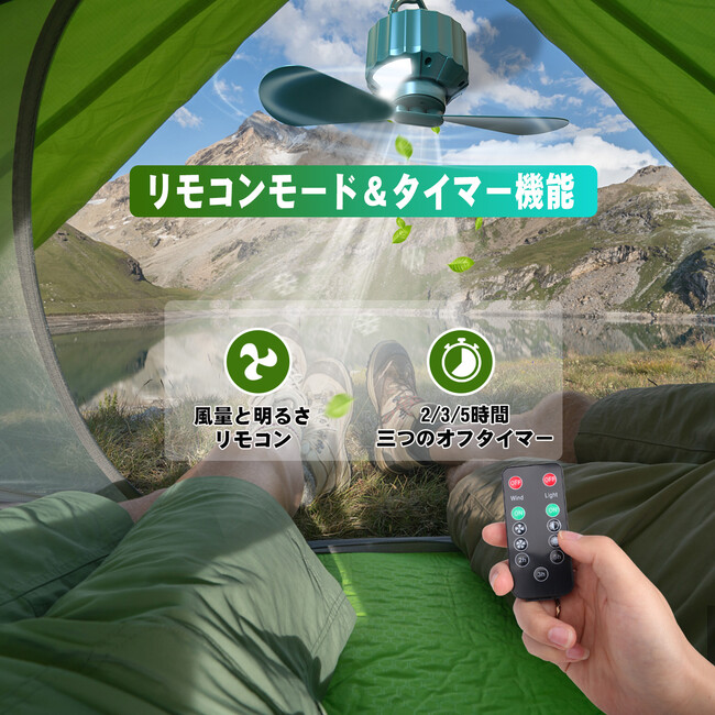 【リモコン扇風機&タイマー機能】コードレスリモコン付き、2~3メートル以内で風量とライトの明るさを遠距離でコントロールできます。2/3/5時間の三つのオフタイマーも設定できます。