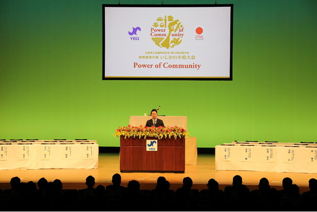 開会セレモニーでは、小野 知一郎全国大会会長(小松YEG)が、「1月に大規模な震災が発生した中、YEGコミュニティの力が、大会の開催に向けて大きな力となり、後押しをしてくれた」と述べ、開会を宣言。