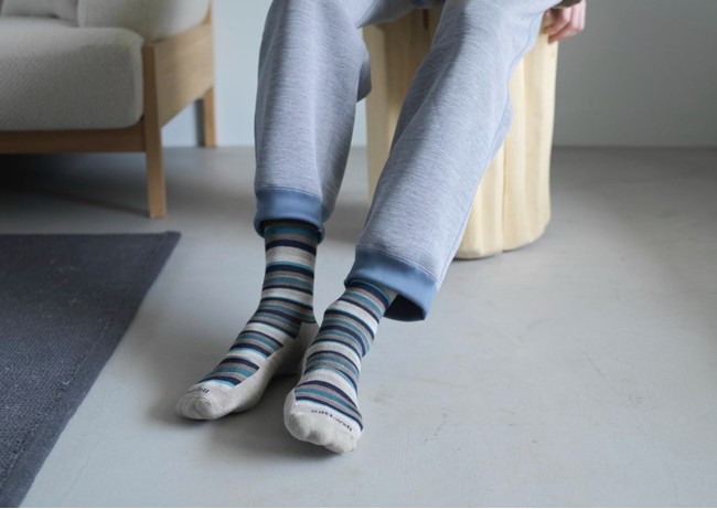 一年を通して快適に使用できる高い機能性を持つメリノウールをベースに、サスティナブルなバンブー(竹)やアルパカをブレンドしたオリジナル繊維を紡ぎ、より良い履き心地のソックスに仕上げました。ウールは動物福祉という考えのもとで飼育された羊から調達。生産過程でも糸の染色に使用する水や、Repreve(R)と呼ばれる消費前の繊維廃棄物から作られたリサイクルナイロンに移行するなど環境への配慮を行い創業当初から「地球にとって一番良いことは何か」を最優先したモノづくりをおこなっています。