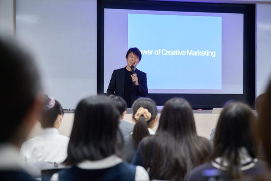 講師はディアワンダーCEO&CMOの前刀禎明氏。ソニー、ディズニーで新規事業開発を手がけ、アップルではスティーブ・ジョブズ氏に認められ、世界的ヒット商品「iPod」の仕掛けをリード。現在は、AIを創造的に活用してCQ(好奇心・創造性指数)を高めるアプリ「DEARWONDER+」を展開している。前刀氏は、次世代の世界で活躍する中高生にそのヒットが生まれた「マーケティングが生み出す創造性」について、直接レクチャー。その結果、参加した学生の82%が「マーケティングをもっと学びたくなった」と回答をし、マーケティングによる次世代を創造力の可能性を届けました。