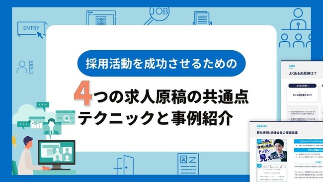 本資料では弊社の事例から成功する求人原稿の4つのポイントをご紹介しています。採用担当の方がすぐに改善できる項目もあるので、本資料を参考に求人原稿から採用活動の成功にお役立てください。