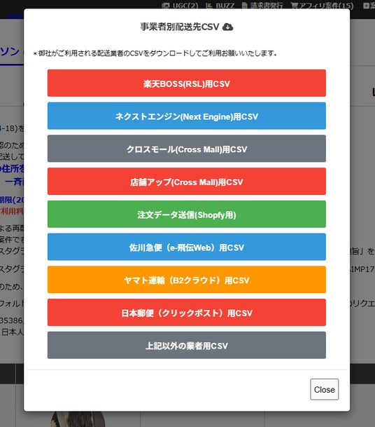 Shopify、楽天BOSS、ネクストエンジン、クロスモール、店舗アップ、ヤマト運輸「B2クラウド」、佐川急便「e飛伝Web」等主要出荷システムに対応し金銭的時間的コスト削減