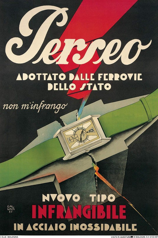 ペルセオは、そのアール・デコ様式の瀟洒なウォッチをあえて「INFRANGIBILE=壊れない(イタリア語)」と名付け、国民に愛された鉄道時計メーカーとしての矜持と誇りを表しています。