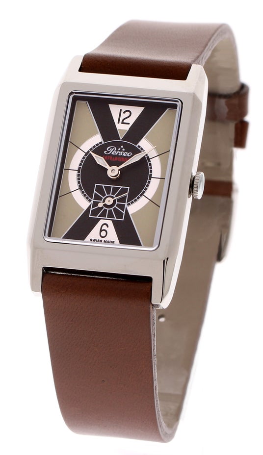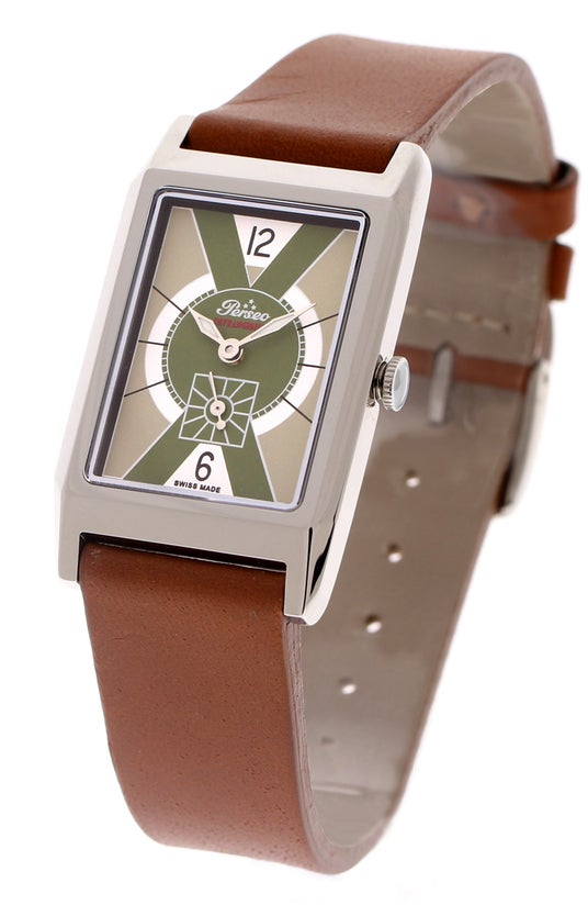 二度の大戦に挟まれ、経済的繁栄と文化的変革が著しかった1930年代初頭、すでに鉄道、軍用時計で国家的ブランドとしての地位を築いていたペルセオですが、このアール・デコ様式レクタンギュラーウォッチを売り出すことでイタリアらしい美意識とこだわりを世に知らしめることになります。
