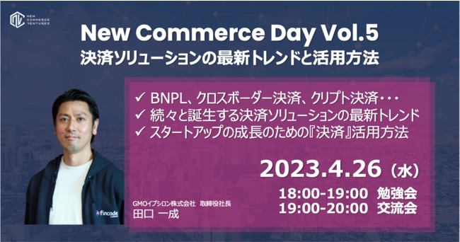 小売・流通のDXを支援するNew Commerce Ventures株式会社(本社:東京都品川区、代表取締役:松山馨太・大久保洸平、以下NCV)は、『New Commerce Day Vol.5 決済ソリューションの最新トレンドと活用方法』を開催します。