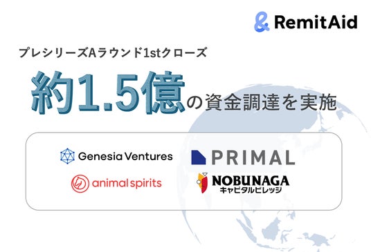 「世界に挑む日本を支える」をビジョンに掲げ、海外企業との取引を簡単にするグローバルマルチ決済プラットフォーム「RemitAid(レミットエイド)」 (https://remitaid.io/) を提供する株式会社RemitAid(本社:東京都渋谷区、代表取締役:小川裕大、以下当社)は、この度、ジェネシア・ベンチャーズをリードとし、プライマルキャピタル、アニマルスピリッツ、NOBUNAGAキャピタルビレッジ、個人投資家を引受先とした第三者割当増資およびデットファイナンスにより、プレシリーズAラウンドのファーストクローズとして総額1.5億円の資金調達を完了いたしました。