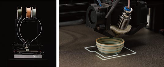 従来の「素材を収集・分類する」ことを起点としたCMFデザインを発展させ、3Dプリンティングによってより目的にフィットしたCMFを創り出すという新たなデザイン手法を追求しています。