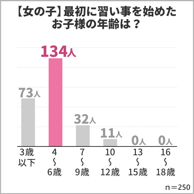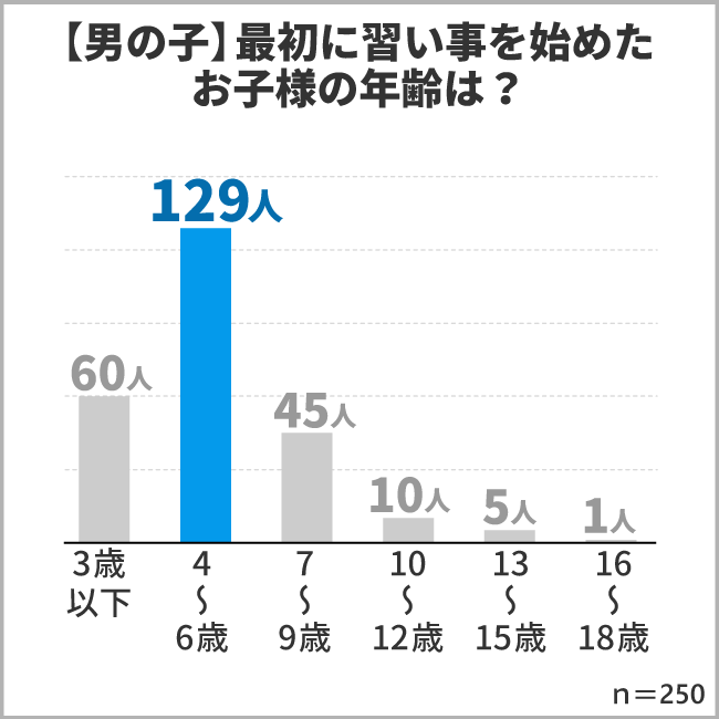 男の子も女の子も初めて習い事を始めた年齢は「4~6歳」が一番多い結果となりました。
