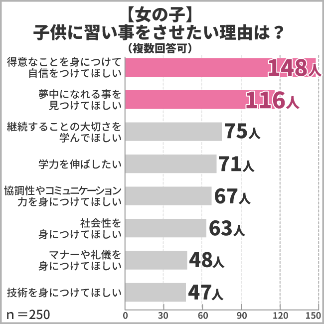 ●【女の子】子供に習い事をさせたい理由第1位は「得意なことを身につけて自信をつけてほしい」