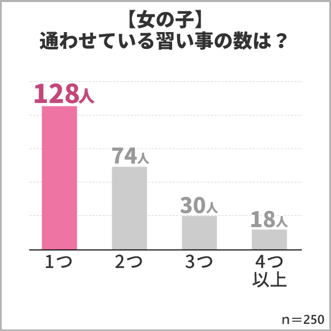 ●【女の子】通わせてる習い事の数は1つが一番多い