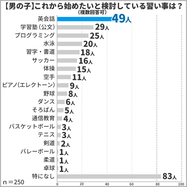 次に、これから新しく始めようか検討している習い事を聞いてみました。