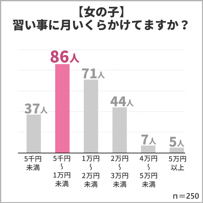 ●【女の子】習い事にかける費用は月5千円~1万円未満が一番多い