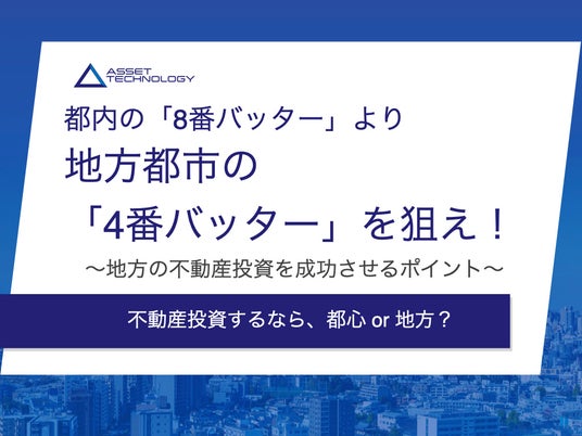 アセットテクノロジー株式会社(本社:大阪府大阪市、代表取締役:宮本泰光、https://assettech.co.jp/service/) は、資産運用のための不動産投資が話題の中、地方の不動産投資に関する情報提供を目的とした「不動産投資するなら、都心 or 地方?|地方の不動産投資を成功させるポイント」解説ガイドを無料公開しました。