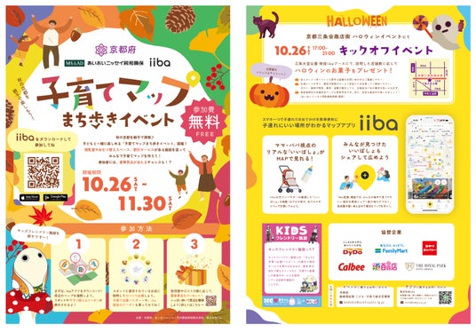 「こどもまんなか月間」である11月に株式会社iibaの運営する子育てマップアプリ「iiba」を活用した府民参加型の親子で楽しめるまち歩きイベントを開催。