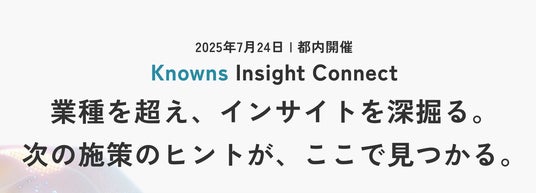 ノウンズ株式会社(本社:東京都渋谷区、代表取締役:田中啓志朗、以下「ノウンズ」)は、生活者インサイトを起点にしたブランド戦略の実践知を共有するイベント「Knowns Insight Connect(ノウンズ・インサイト・コネクト)」を、2025年7月24日(木)に開催いたします。